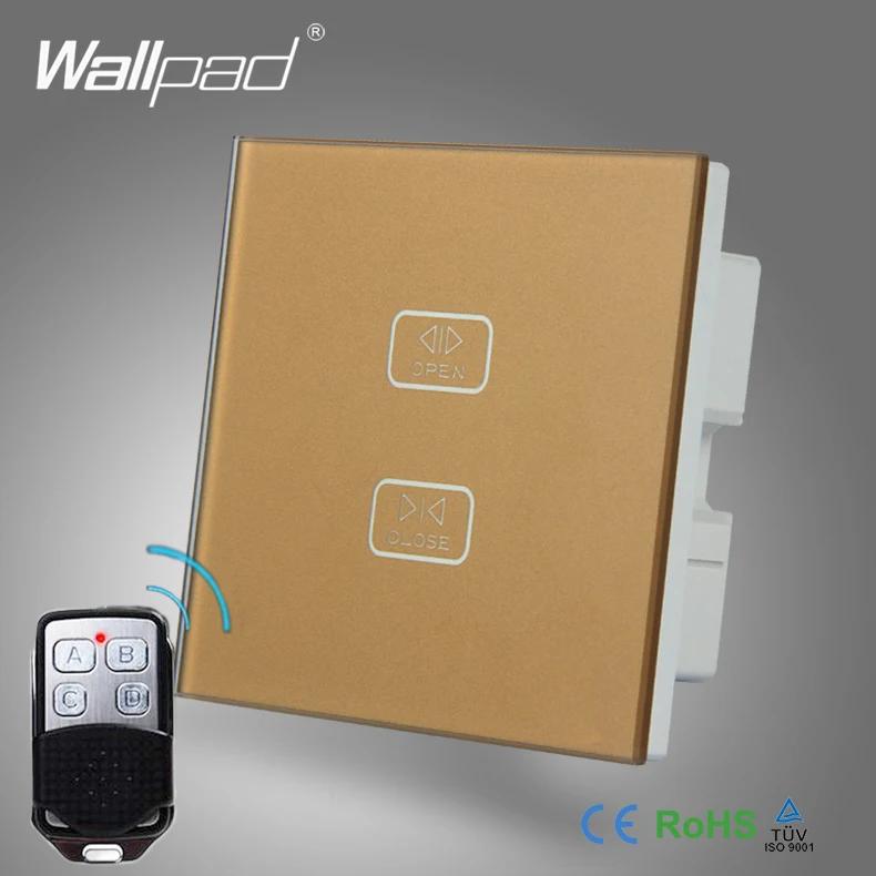 Beste Kopen High End Remote Gordijn Switch Wallpad Gold Gehard Glas 2 Gang 1 Way Remote Touch Roller Gordijn Venster Controle Muur switc Goedkoop