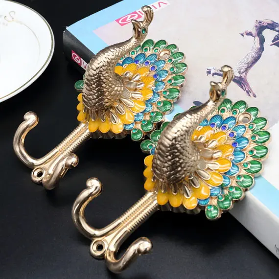 Beste Kopen 1 st Pauw Kleding Haken Kleurrijke Jas Muur Haken Goud Zilver Brons Koper Kleerhangers Gordijn Stropdas Terug Dier haken Goedkoop