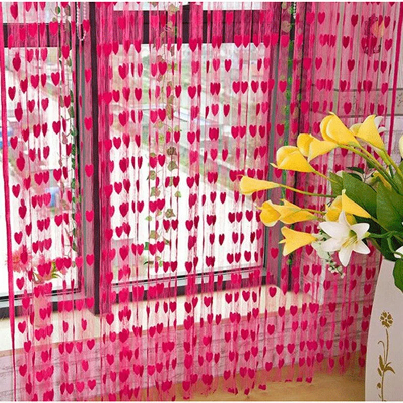 Kopen Goedkoop Klaar Made String Gordijnen W1m * H2m Hartvorm Romantische Tule Gordijn Voor Woonkamer Deur Partition Muur Vestibule Gordijn Online
