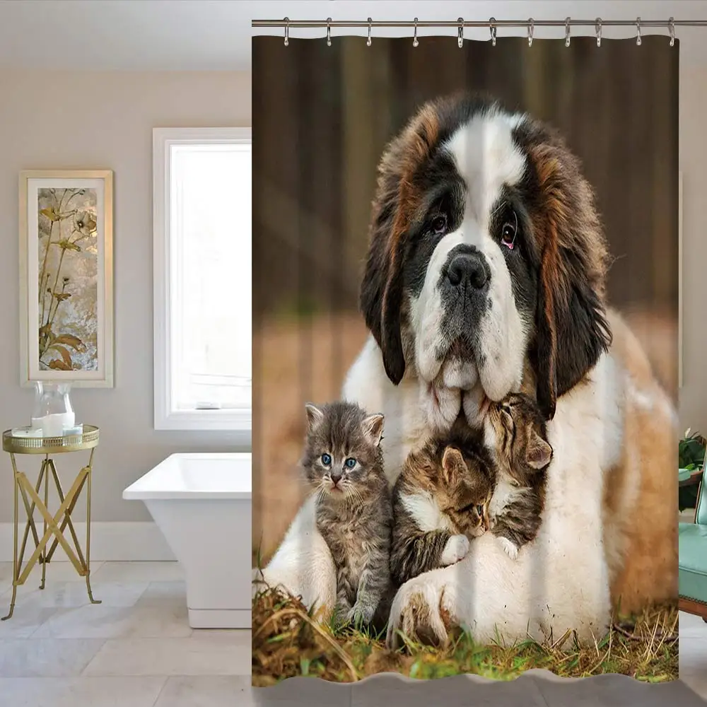 Goede Kopen Hond Polyester Waterdicht Badkamer decor Douchegordijn Muursticker Hanging60X72inch 72X72 inch Gordijn Leverancier Groothandel Prijs Goedkoop