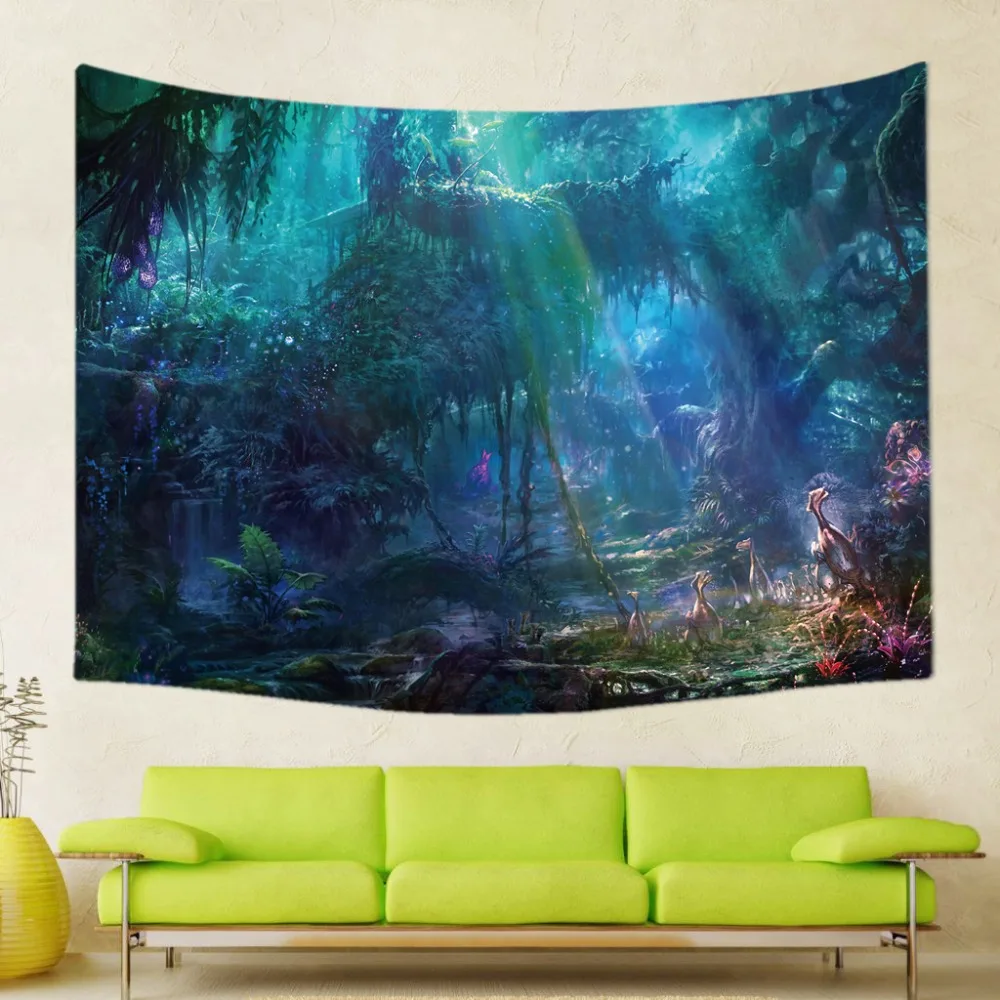 Kopen Goedkoop Twee afmetingen Cartoon Psychedelische Bos Bomen Starry Tapijt Muur Opknoping Decoratieve Polyester Gordijnen Plus Lange Tafel Cover Prijs