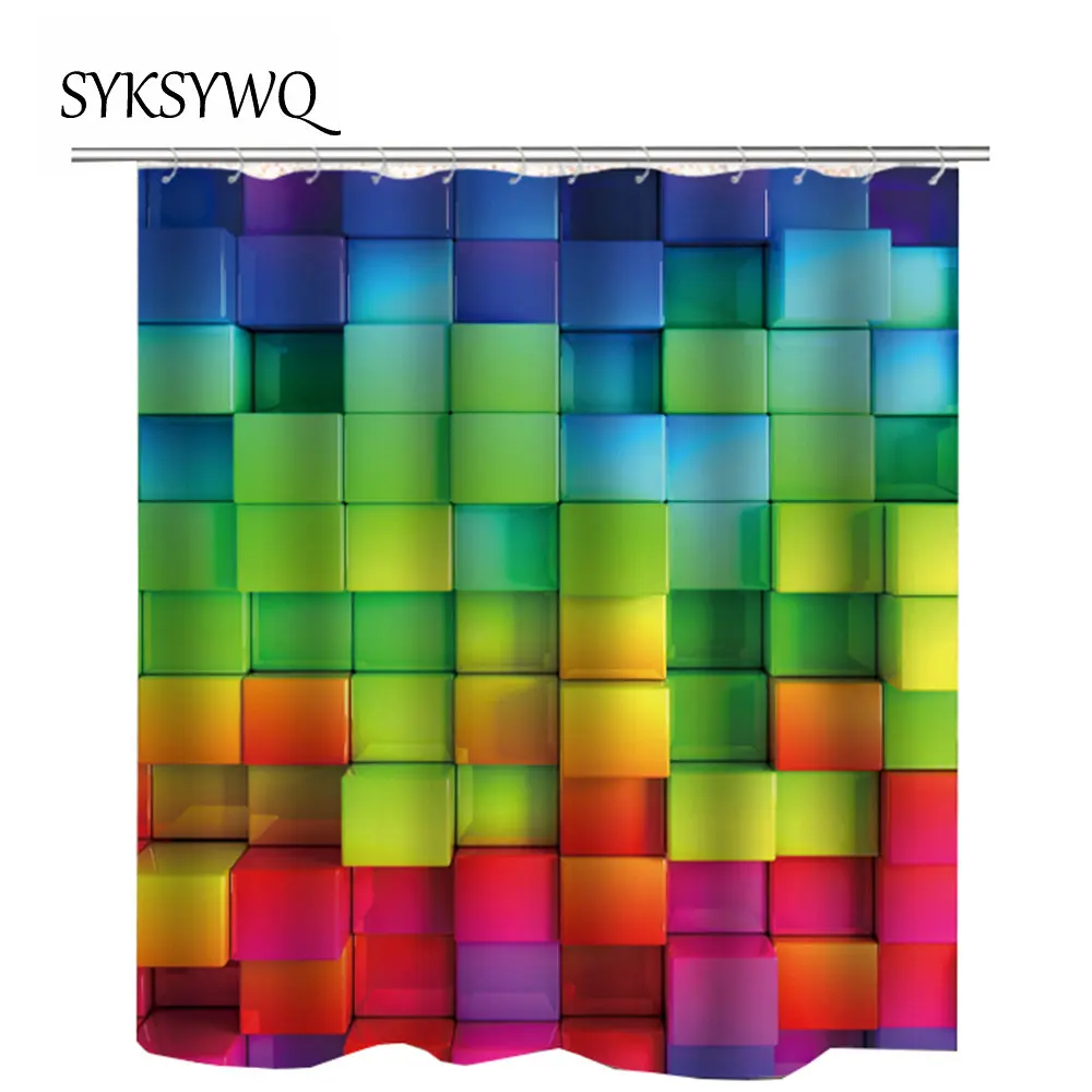 Kopen Goedkoop Groen Douchegordijn Blauwe Bad Gordijn Kleurrijke Vierkante Vorm Roze Badkamer Gordijn Waterdichte Bakstenen Muur Badkamer Douche Prijs