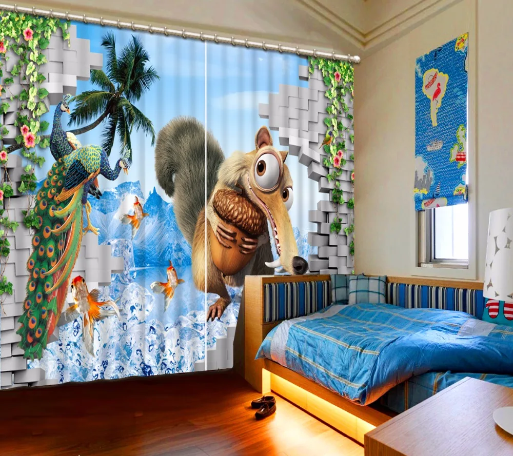 Beste Kopen 3D Gordijnen Polyester Katoen Kinderkamer Gordijnen dier Decoratie Gordijnen 3D Muur Gordijn Blackout Goedkoop