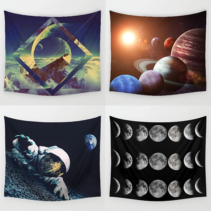 Goede Kopen Hyha Ruimte Stijl Tapestry Polyester Stof Astronaut Galaxy Muur Opknoping Decor Drie Zware Maan Doddess Gordijnen Tafel Cover Goedkoop
