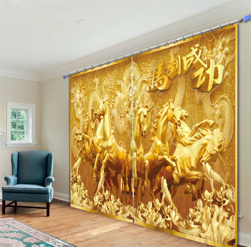 Kopen Goedkoop Gold paard Luxe 3D Verduisterende Gordijnen Gordijnen Voor Keuken woonkamer Bed room Gordijnen Hotel Kantoor Wandtapijt Online
