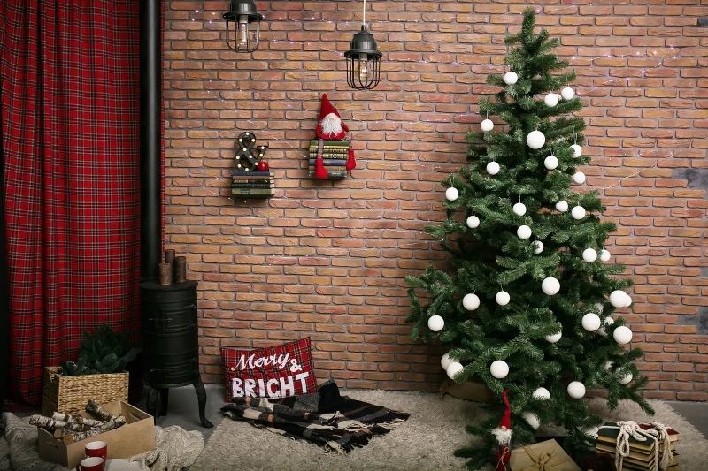 Kopen Goedkoop Laeacco Kerst Achtergronden Bakstenen Muur Boom Tapijt