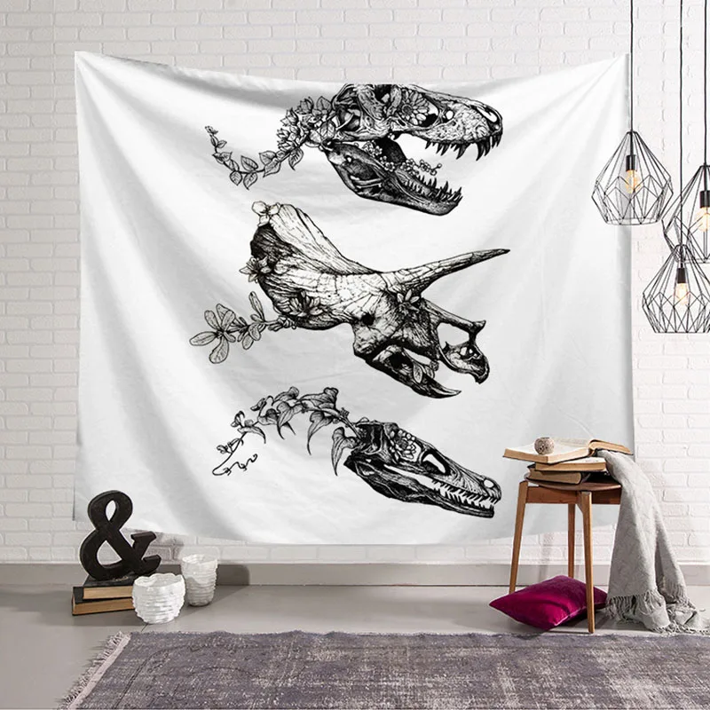 Beste Koop Dinosaurus Schedel Tapijt Muur Opknoping Witte Stof Dieren Decor Korte Gordijnen Goedkoop