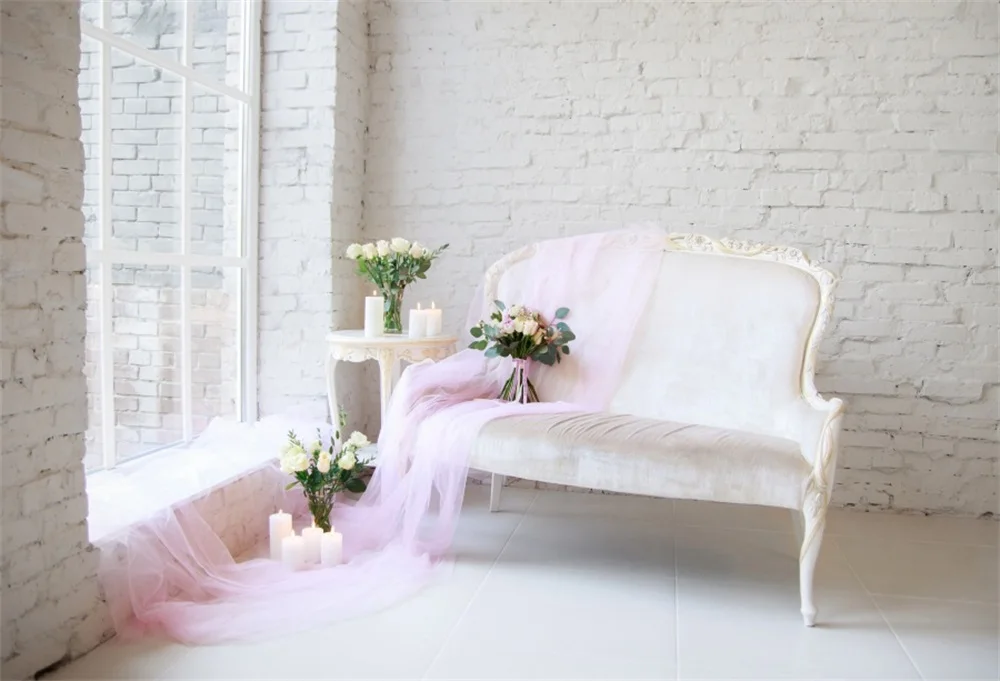 Kopen Goedkoop Laeacco Gordijn Sofa Witte Bakstenen Muur Bloem Fotografie Achtergronden Aangepaste Fotografische Achtergronden Voor Fotostudio Online