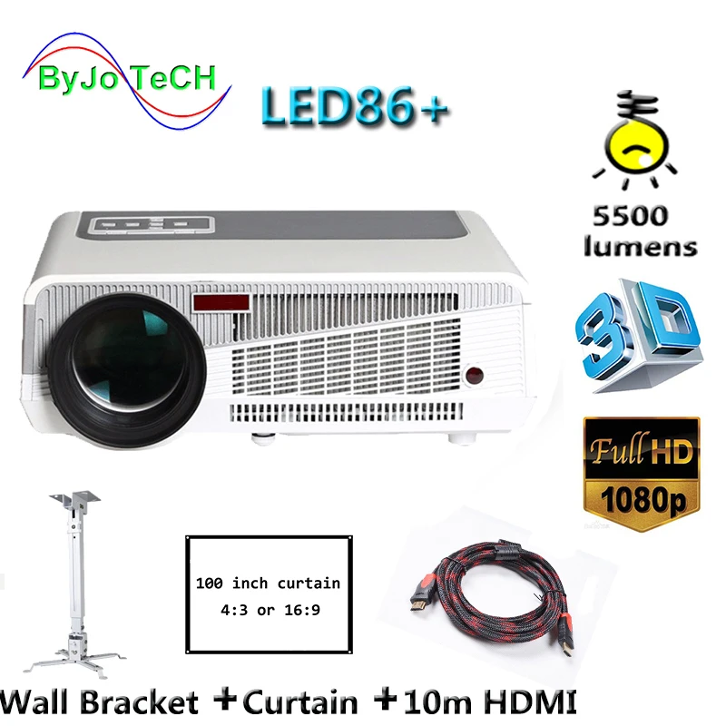 Goede Koop Poner Saund LED86 + 5500 lumens Full HD LED projector 1080 p 3D home theater video Met 10 m HDMI vliesgevel Beugel proyector Goedkoop