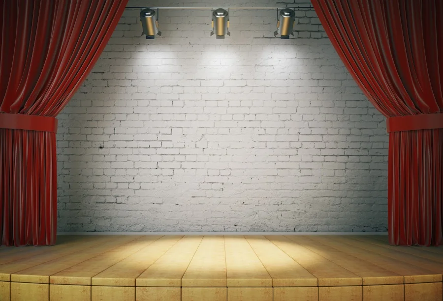 Kopen Goedkoop Laeacco Grijze Bakstenen Muur Rode Gordijn Spotlight