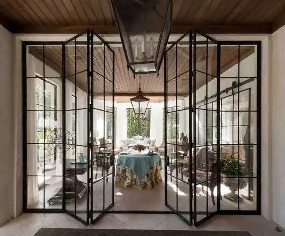 Beste Kopen Export gehard Lage e enkele dubbele geglazuurd exterieur smeedijzeren sliding ijzer franse deuren hench if41 Goedkoop
