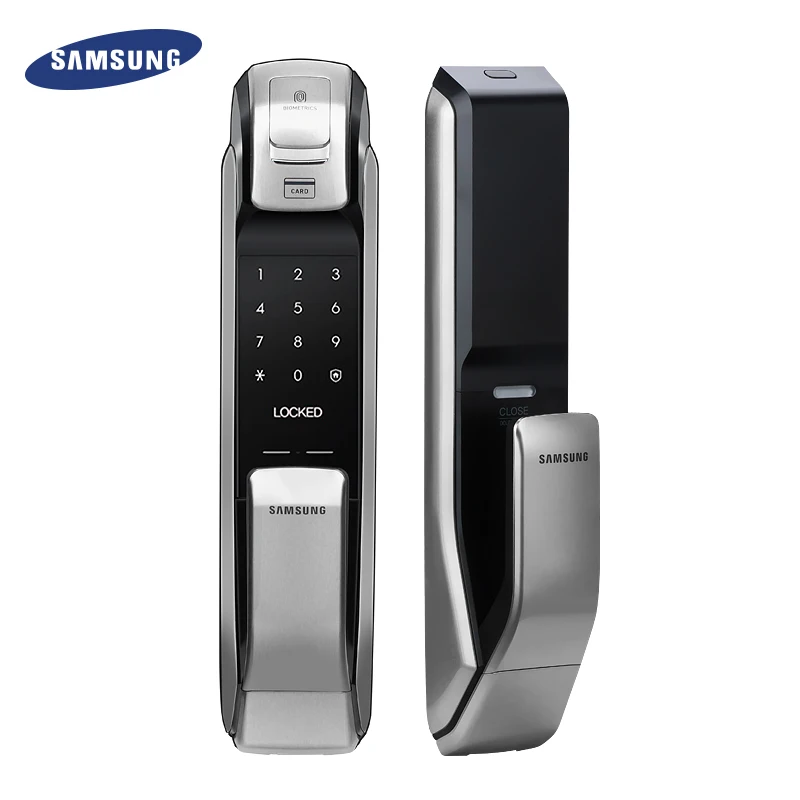 Kopen Goedkoop Engels Versie Grote Mortise SAMSUNG SHP DP728 Keyless BlueTooth Vingerafdruk PUSH PULL Digitale Deurslot Zilver Kleur Online
